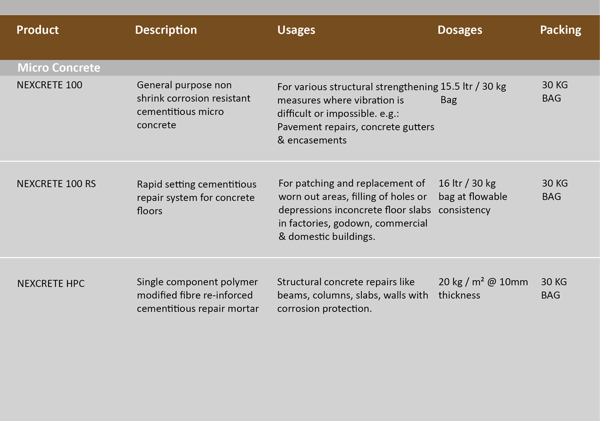 Concrete structures faces several problems & require structural strengthening. This range of repair materials reinstate, strengthen & retrofitdefective & distressed concrete including underwater repairs.